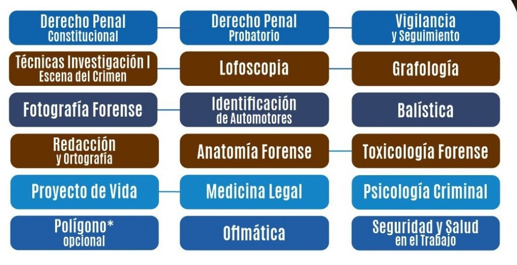 Los mejores contenidos de la región para el programa técnico más serio en Criminalística y Ciencias Forenses, compare nuestros contenidos, contamos con Laboratorio de Investigación y excelentes educadores. Al terminar podrá aspirar a cargos públicos afines, con mayores posibilidades que un bachiller, ser lofoscopista en bancos, en automotores con aseguradoras y concesionarios, asistir en bufetes de abogados o crear su propia empresa de investigación privada.